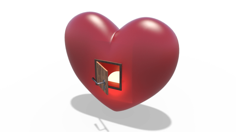 Je vois donc côte à côte une porte (une porte en bois) et un cœur, mais sur ce cœur il y a comme une porte. Tout est fermé.