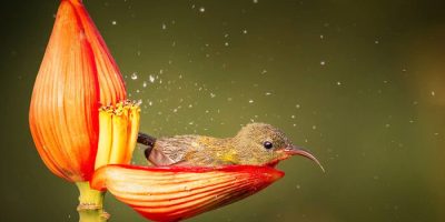 Asie, Méditation biblique Un photographe capture la scène féerique d’une femelle souimanga siparaja prenant un bain de rosée dans un pétale de fleur 2 août 2021 — 0 Commentaire