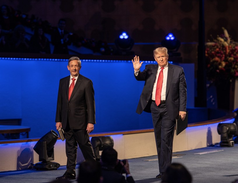 Au début du service, Trump a été présenté par le pasteur principal de la First Baptist Church of Dallas, Roberts Jeffres , l’un des conseillers de l’ancien président pendant son séjour à la Maison Blanche.