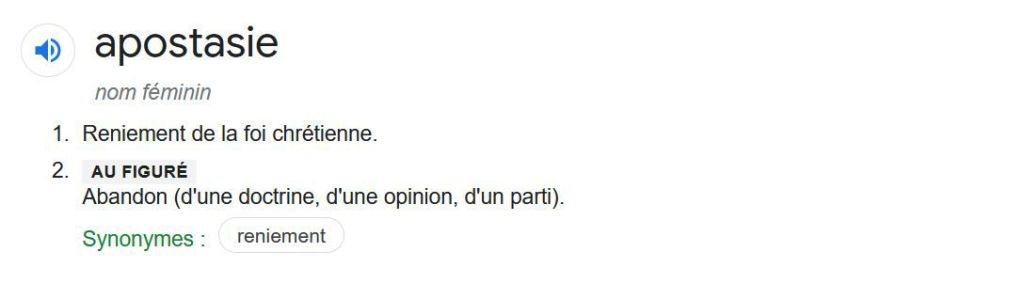 Les chrétiens qui pensent qu’il suffit d’être bon aux yeux des hommes pour aller au Paradis ont déjà adopté l’Apostasie (délaissement de Dieu), pour mettre l’humain au centre de tout.