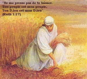 Ruth 1/16 : 16 Ruth dit – Ne me pousse pas à t’abandonner, à me détourner de toi ! Où tu iras, j’irai ; là où tu passeras la nuit, je passerai la nuit; ton peuple sera mon peuple, et ton dieu sera mon dieu;