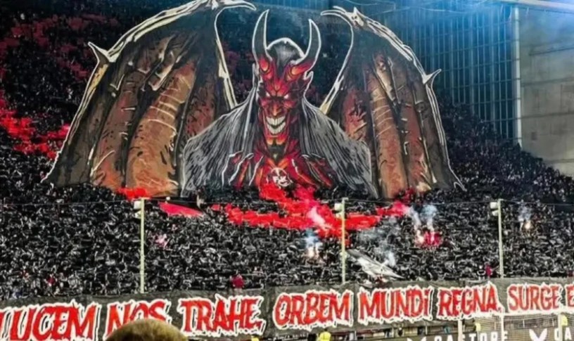 Surnommés « Les Diables Rouges », les supporters ont affiché dans les tribunes un panneau avec l’image de Lucifer, avec des cornes et des ailes, sur un pentagramme inversé, symbole utilisé dans les rituels satanistes.