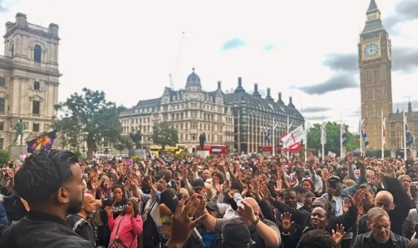 Sur la place du Parlement à Londres, la foule a adoré Dieu et prié pour un réveil spirituel parmi les Britanniques.